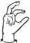 На ћирилици написано ДИЈАНА КАЗИМИРОВИЋ састоји се из 17 слова [?]. Исписано ћириличном једноручном азбуком за глувонеме: